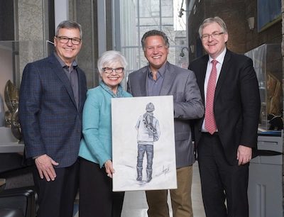 Pictured L to R: Maureen Haddock, Gord Haddock, John Williams, and Dean Keith Willoughby of Edwards School of Business.